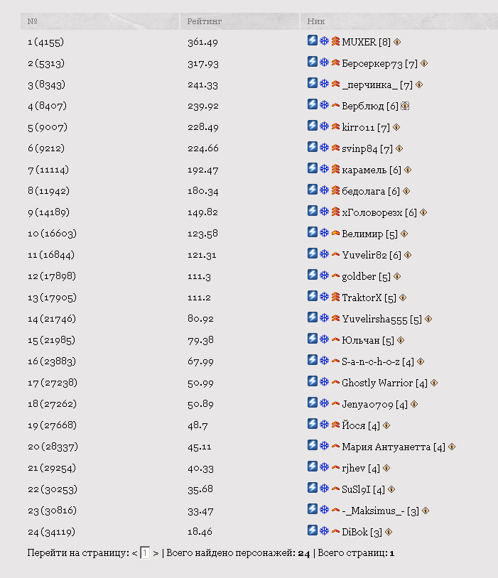 | Заработал. Мы на 10 странице. Наверное опустились за счёт проклятых. http://mercenaries.dclans.ru/pro/clan_rating.php
